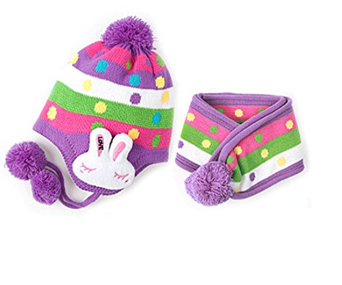 Kishiya ベビー帽子 ニットキャップ+マフラー かわいい 防寒 ウサギ (紫)