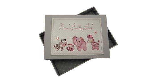 A Gorgeous Nana?s Boasting Book. A stunning pink handmade plaque on a Tiny White Album. Album holds 32 photos, size 6x4 cm in 16 plastic wallets. White Cotton Cards is a handmade cards and gift company. All Cards and Gifts at White Cotton Cards are individually handmade in the United Kingdom making each product you purchase from us truly unique and just like you, that extra bit special. At white cotton cards we take pride in our work and every effort is made to make each product perfect. We cater for every occasion and are constantly designing new ranges to keep you coming back for more.