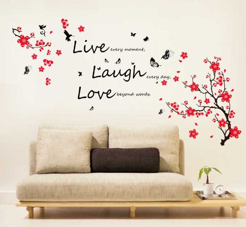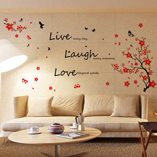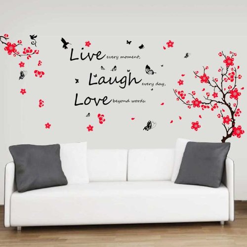 Walplus Huge Flower Blossom/Butterflies/ Children Live Laugh Love Vivid Wall Stickers