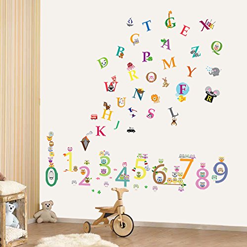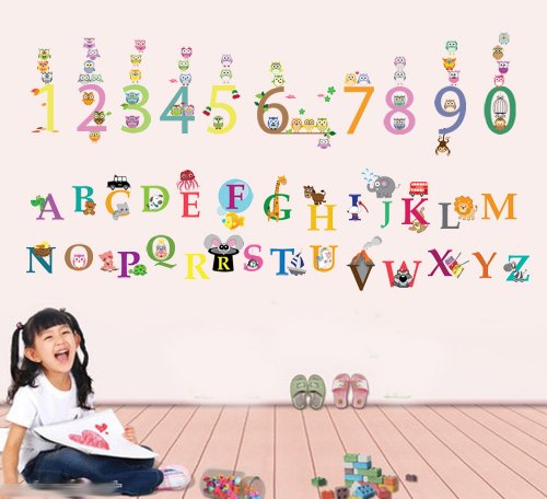 COM-Alphabet+Numbers Kids Boys Girls Babies Combo123 Plus ABC Nursery Room Children Wall Stickers Paper, Mixed Colour
