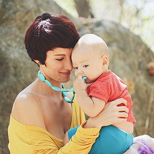 【1】色も豊富で、歯固めと言うより見た目は天然石のように凝った色合いです。だから外出時でも気にせず身につけることができるし、ネックレスだから歯固めを地面に落とす心配もありません。