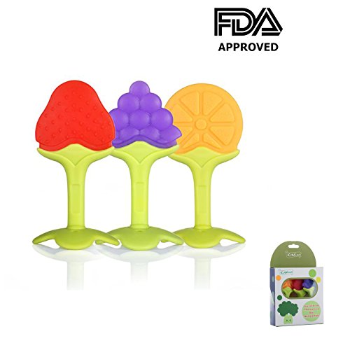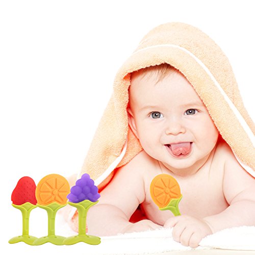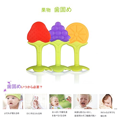 Kitdine 歯がため 果物のモチーフが可愛いはじめてのおもちゃ シリコン製 おしゃぶり 3本セット (苺、オレンジ、葡萄)