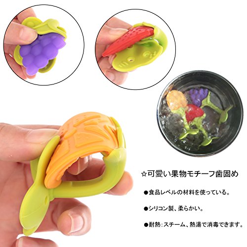 - 1、食品レベルの材料:弊社の果物の歯固めセットは食品レベルの材料(無毒のシリコン製)製で、素材は米国食品医薬品局(Food and Drug Administration:FDA)の認証を取得しました。
