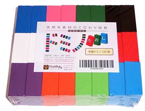 大人も子供も一緒に遊べる人気のマルチカラードミノです。;いろいろな遊び方ができて、積木としても楽しい♪;対象年齢 :6歳~100歳(^o^);ドミノ倒しに使えるサイズ(44×20×7mm)とカラーに加工してあります。 12色×10個=120個セット;ニュージーランド原産の天然松木を使用してますので、細かい木目や欠けがある場合はございますが、気になる場合は交換致します。