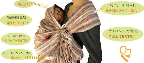 通気性と強度に優れたオリジナルな綿麻生地。 麻の糸と綿の糸に弾力をかけ、糸自体が戻ろうとする弾力差をもったまま、織りを施した手生地です。 独特のシャリ感があり、通気性もバツグンだから、まさにベビースリングにはもってこいの生地なのです。