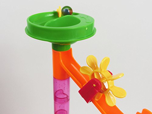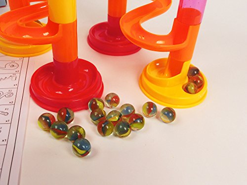 - 実物写真。商品セットに全てのパーツを含みます。 組立済みのタワー高さは約55㎝。 パーツ:14種類50個、ボール(ビー玉):30個