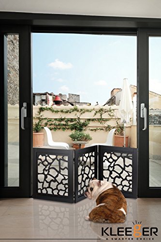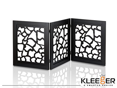 Folds To 19" Tall x 15 3/4" Wide For Easier Storage While Not In Use. Sometimes our pets like to explore areas of the home that just simply are not meant for them, Or at times we just feel that we want our privacy and want some alone time. The Kleeger Pet Gate was designed for a quick fix to solve that problem. The good thing is, there are no tools required to set it up with, which really keeps it simple and easy for anyone to setup. The gate quickly unfolds like an accordion and stands on its own to safely limit your pets access to certain areas of your home. It's extra length allows you to block more than just the average doorway. Can be used in between double doors, wide hallways, in between couches and more. The New Kleeger Pet Gate is a great addition to help in keeping the pets out of trouble And its stylish design keeps your home, fresh looking.