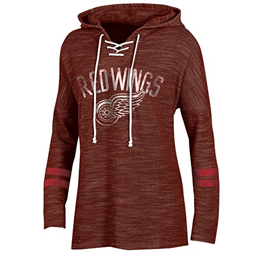 NHL Detroit Red Wings NHLレースアップネックフード付きプルオーバー、Large、アスレチックレッドFrench Terry