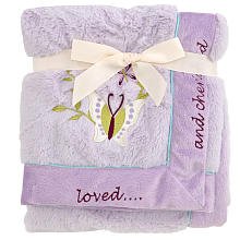 30 x 40 inch blanket is the perfect size for swaddling;Made from thick, super-soft polyester fleece;Lavender blanket is decorated with a butterfly applique and text reading 'loved and cherished';Machine wash warm, tumble dry low