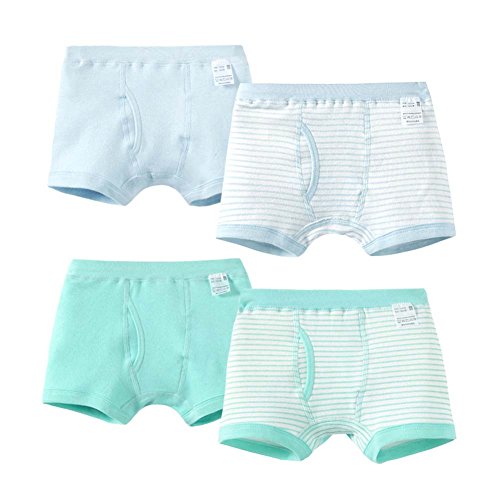 4つの柔らかい子供の下着のセットコットンボーイズブリーフ、青緑、身長95-105cm