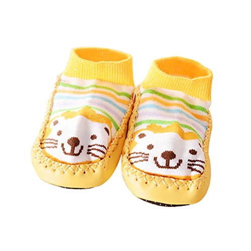 イエローライオンショートスタイルベビーアンチスリップソックス厚みの新生児プリウォーカー