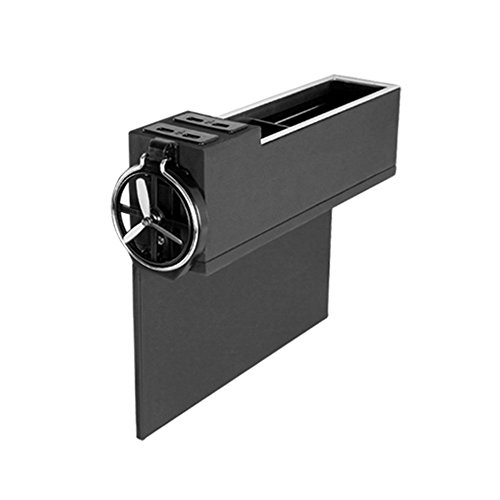 Kobwa 車用収納ケース 助手席ポケット 隙間収納ケース USB機能搭載 小物入れボックス 多機能 隙間埋め 仕切り調節/解体可能 飲み物置き場 ゴミ箱(助手席 ブラック+シルバーサイド)