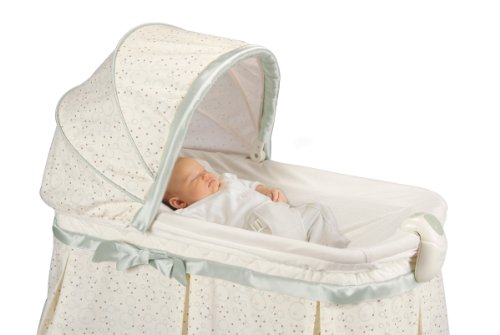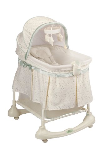 Inclinded surface allows babies sleep on an incline, to help give both mom and baby a peaceful night's sleep;Easily remove incline sleeper attachment for use as a traditional bassinet;Light Vibes electronic unit with classical music, nature sounds, variable vibrations, and soft-glow check light;Locking wheels for room to room mobility and conveniently converts to a rocking bassinet;Mattress comes with washable fitted sheet