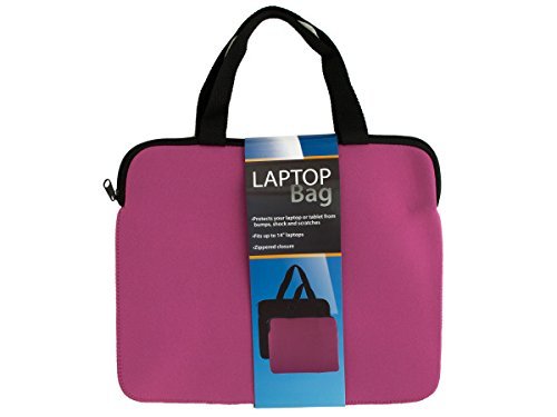 Protect your laptop or tablet from bumps, shock and scratches with this durable Neoprene Laptop Bag with zippered closure and handles. Fits laptops up to 14". Measures approximately 13" x 10" with 6" drop carrying straps. Comes in assorted colors. Comes packaged with a wrap around tag.