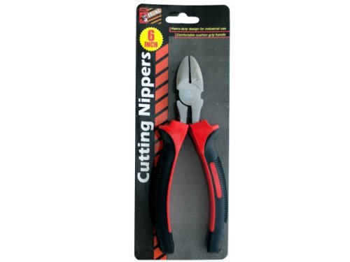 A toolbox essential, these 6" Diagonal Cutting Nippers feature a heavy duty design for industrial use and comfortable cushion grip handles. Made of sturdy metal with plastic handle covers. Comes packaged with a hanging panel.