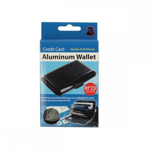 Keep money and cards organized and your identity safe with this Aluminum Credit Card Wallet featuring a slim hard-shell case that blocks RFID tags now embedded in some credit cards, a six-pocket accordion interior that neatly organizes cards and bills and an easy to open and close clasp. Measures approximately 4.25" x 0.75" x 3". Comes packaged in a hanging box.