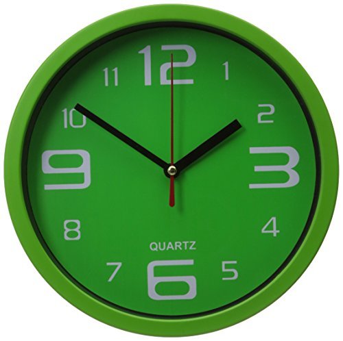 The modern style wall clock has a fun and vibrant look making it a perfect piece to liven up any room. The clock is bright green and has stylish face. Uses 1 "AA" battery (not included). Comes packaged in a window box.