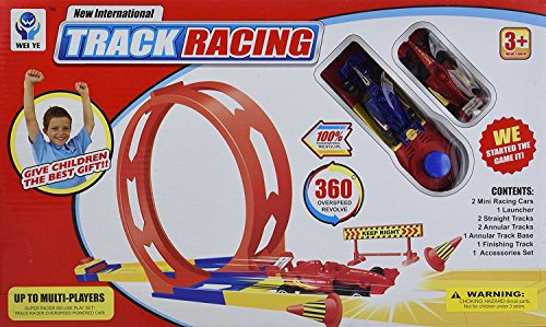 Great for rainy days, this Super Loop Race Track is bound to keep kids entertained for hours! Super loop racer includes: 2 mini racing cars, 1 launcher, 2 straight tracks, 2 angular tracks, 1 straight track, 1 finishing track and 1 set of accessories. Not