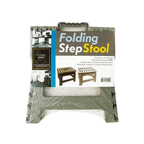 Great to have around the home, office and more, this compact Folding Step Stool effortlessly unfolds to a secure locking position and provides a non-slip grip. Constructed of strong, high-density plastic and features a convenient carrying handle. Measures approximately 11" x 8.5" x 8.5". Comes shrink wrapped. Package measures approximately 14" x 12" x 1.5".