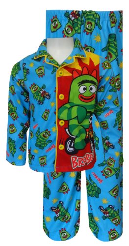Perfect for the Yo Gabba Gabba fan in your house! These flame resistant pajamas for toddler boys feature Nickelodeon's Yo Gabba Gabba favorite Brobee. Coat style pajamas button down the front. Pajama has an allover print pull on pant with an elastic waist. So soft and cozy, they are just right for snuggling up on the couch to watch the show!
