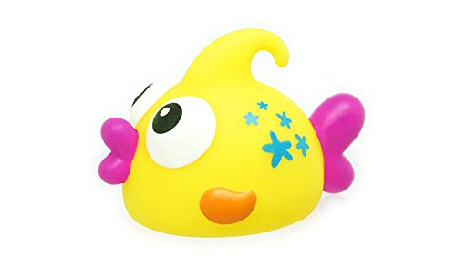Set of 5 colorful bath squirters and bathtub or pool fishing rod for toddlers. Squeeze gently and they will squirt water! Great for bathtub fun and laughs. Approx. squirter size 3'. Tested safe for ages 1+, no BPA or phthalates, non-toxic, no bad smells. Cute characters bright colored fish with different designs. Great for your own children or as an inexpensive unique unisex toddler or baby shower gift.