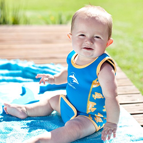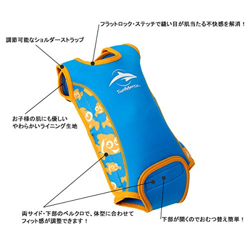 99.9%UVカットで柔らかいベビー用保温水着 保温性の高い厚さ2mmのネオプレーン素材が水中での体の冷えを軽減します。ベビーウォーマ内に入った水は体温で温められて、暖かさを保つことができます。さらに、水中で滑りやすくなっているお子様の体をつかみやすくします。サイド・上部が開いて着せやすく、下部を開けばおむつ替えがラク。ショルダーストラップと下部のベルクロで、体型に合わせたサイズ調整ができます。お子様の肌にも優しいやわらかいライニング生地。フラットロック・ステッチでお子様の肌に縫い目が当たる不快感を解消。 素材/クロロプレンゴム80%、ナイロン20% 月齢/6m-12m:7~12kg、12m-24m:12kgから 原産国/中国
