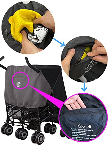 Funky and fun, Koo-Di not only provides solutions which often pose the question: ?why didn?t I think of that?? but are also great value, freeing up precious time to spend doing the fun things in life with your little ones. From pop-up travel cots small enough to fit into your changing bag; to the roomiest changing bags packed with pockets and features;?bath time fun & safety; beautiful feeding sets; fabulously compact pack-it rain covers, sun & sleep shades, carriers, all the bits and bobs you need when out and about?? once you?ve discovered Koo-Di?s innovative and amazingly practical solutions, you will wonder how you ever managed to survive without them. One such product is the Koo-Di Sun and Sleep Double stroller sunshade which protects baby from harmful UV and is ideal as a cover for baby to have quiet nap. The Double Sun and Sleep shade blocks out 93 percent of all harmful UVA and UVB rays. It fits most double strollers and easy to adjust, handy pocket on hood and packs quickly into the integrated pocket. Ideal for storing in the basket of a stroller or in a changing bag at all times to protect little ones from the sun. Machine washable at 40 degree celsius.