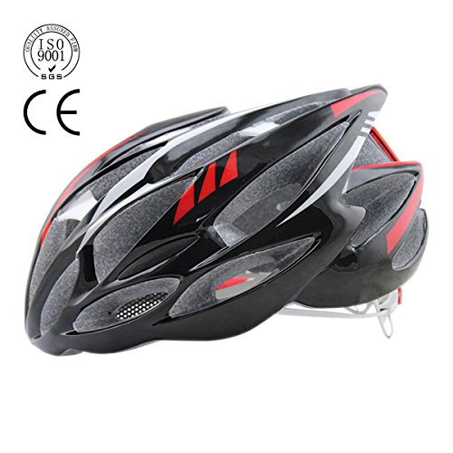 大人用 ヘルメット スタイリッシュ 軽量 自転車用 サイクリング ヘルメット バイク ヘルメット 自転車 アジャスター サイズ調整可能 豊富なカラーバリエーション LEDテールライトセット ブラック レッド