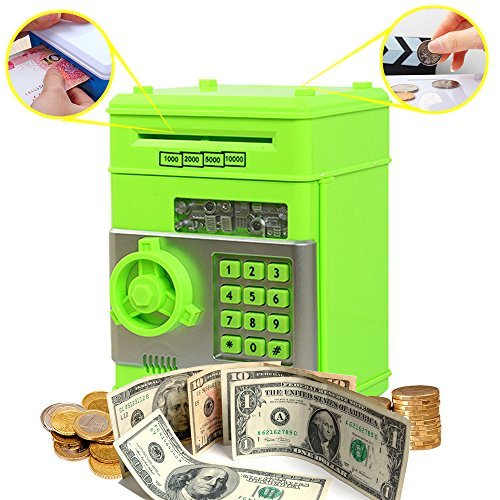 コイン銀行キッズ用、kpacoコード電子マネーバンク、ミニATM CoinパスワードボックスSaving Banks、ベビーおもちゃギフト誕生日ギフトforキッズ – 緑