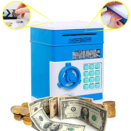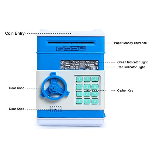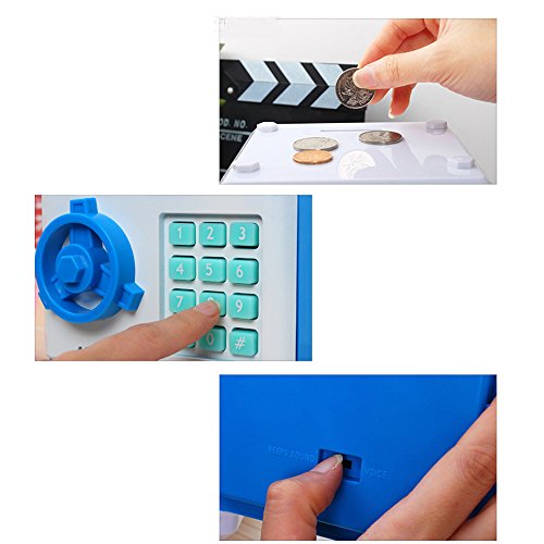コイン銀行キッズ用、kpacoコード電子マネーバンク、ミニATM CoinパスワードボックスSaving Banks、ベビーおもちゃギフト誕生日プレゼントキッズ用 – ブルー