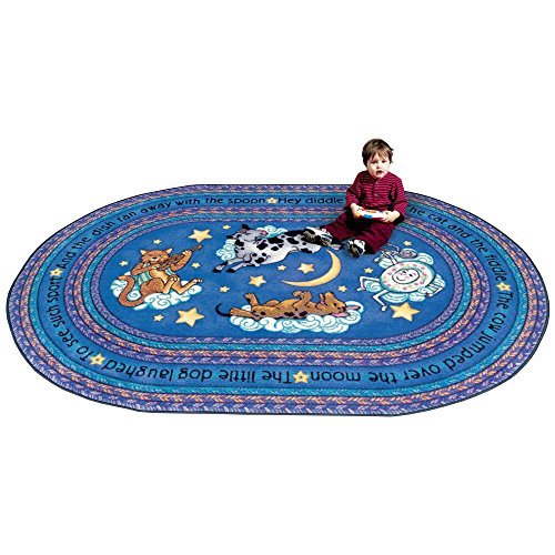 Joy Carpets Kid Essentials Infants & Toddlers Oval Hey Diddle Diddle Rug Blue 7'8 x 10'9 [並行輸入品]