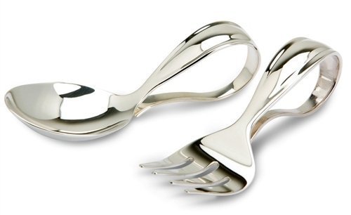 Krysaliis Sterling Silver Baby Spoon and Fork Set, Bent Curved