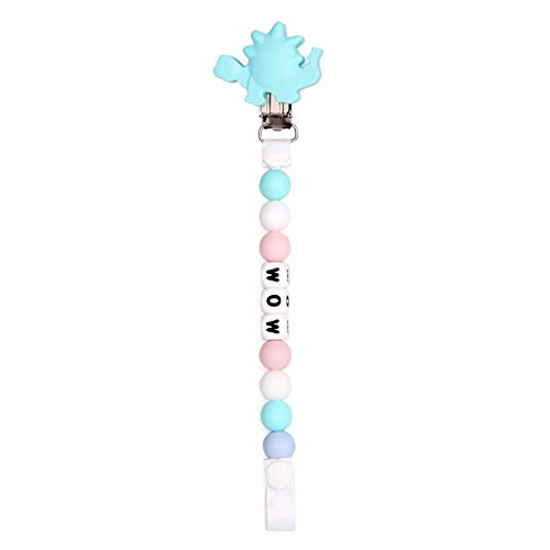 Kuke おしゃぶりホルダー ビーズ歯固め クリップ 無毒 ベビーカー お出かけ 落下防止 (ブルー)
