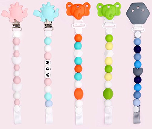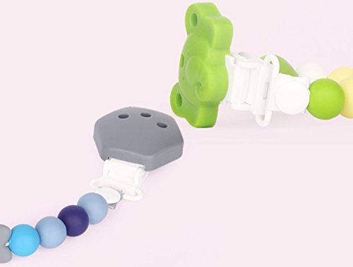 Kuke おしゃぶりホルダー ビーズ歯固め クリップ 無毒 ベビーカー お出かけ 落下防止 (グリーン)