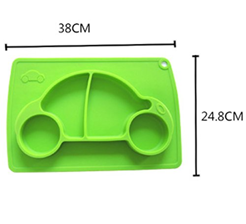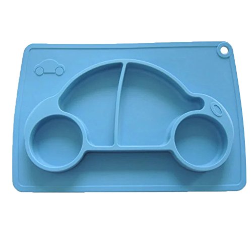 Kuke ブルー 防水シリコン 吸盤付き 強い吸着力 かわいいカー形プレート 遊び食べ 離乳食 ベビー食器 ランチ皿 お食事マット 赤ちゃんミニマット 子供食器ベビー用品