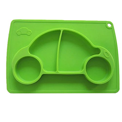Kuke グーリン 防水シリコン 吸盤付き 強い吸着力 かわいいカー形プレート 遊び食べ 離乳食 ベビー食器 ランチ皿 お食事マット 赤ちゃんミニマット 子供食器ベビー用品