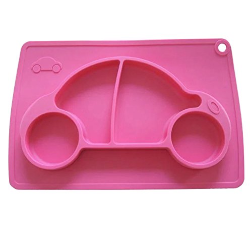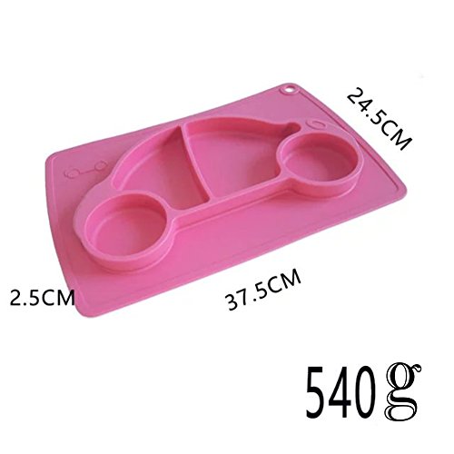 Kuke ピンク 防水シリコン 吸盤付き 強い吸着力 かわいいカー形プレート 遊び食べ 離乳食 ベビー食器 ランチ皿 お食事マット 赤ちゃんミニマット 子供食器ベビー用品
