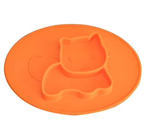 Kuke 安全シリコン素材 かわいい猫の形 お食事マット 子供用 水洗い 赤ちゃん 洗える ランチョンマット 食器 吸盤付き