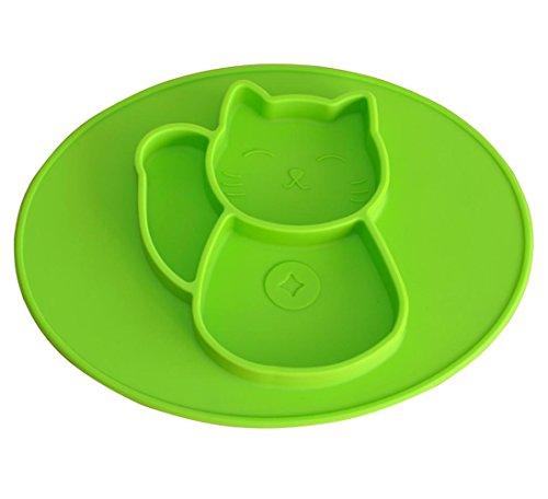 - ランチマットとプレートがall-in 1。マットが食べこぼしもキャッチ。分量がわかりやすい3つの仕切り付き