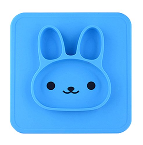 Kukeベビー食器 ランチプレートランチ皿子供用 シリコンミニマット キッズ食事マットウサギ かわいい 離乳食 ぴったり吸着 丸洗い 滑り止め ライトブルー