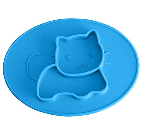 Kukeベビー食器 ランチプレートランチ皿子供用 シリコンミニマットかわいい猫 キッズ食事マットウサギ かわいい 離乳食 ぴったり吸着 丸洗い 滑り止め ブルー