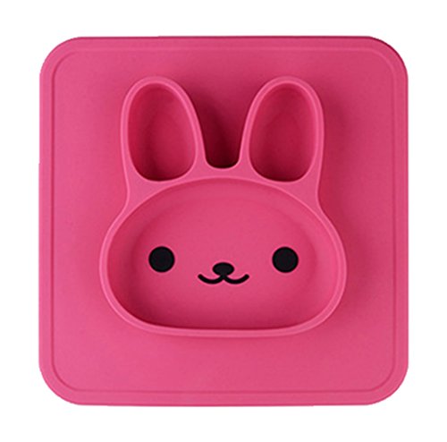 Kukeベビー食器 ランチプレートランチ皿子供用 シリコンミニマット キッズ食事マットウサギ かわいい 離乳食 ぴったり吸着 丸洗い 滑り止め ローズレッド