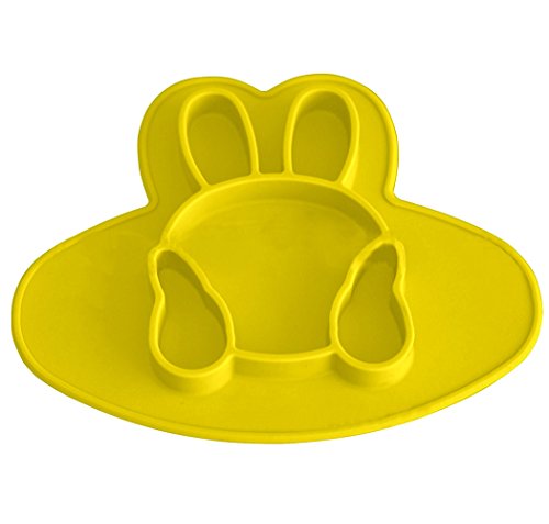 Kukeベビー食器ランチプレートランチ皿子供用 シリコンミニマット キッズ食事マットウサギ形 ベビー テーブルマット 離乳食 丸洗い 滑り止め イエロー