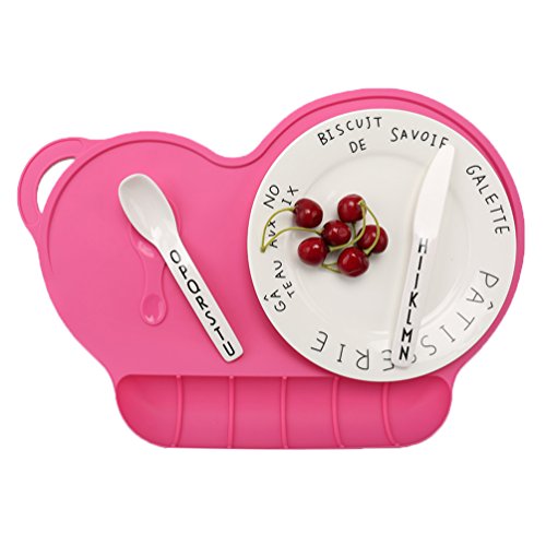 Kuke Kuke ベビー 赤ちゃん 子供用 幼児 安全シリコン ポケット付お食事マット お食事マット 吸着効果 滑り止め 食事の練習 食欲の促進 防水 安全 衛生 洗える 可愛い 4色系 4セット size フリーサイズ (薔薇色)