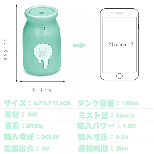 - ✿独特なデザイン: おしゃれな哺乳瓶型超音波加湿器180MLという容量で連続モデルは6時間を働かせることができます。コンパクトでスリムなミニサイズなので、スペースに困らずお好きな場所でご使用いただけます!いつでもどこでも、持ちやすいです。