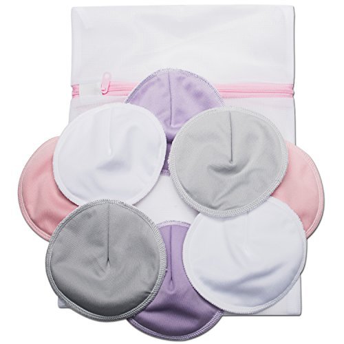 FREE LARGE LAUNDRY BAG INCLUDED! Large bag prevent pads from getting lost in the laundry and provides enough room for a thorough cleaning every time!;OVERNIGHT PROTECTION for medium to light leaks. Bamboo is soft, natural and gentle on sensitive skin and ensures nipples are protected and comfortable;LEAK PROOF LAYER prevents medium to light leaks from staining your clothes. SUPER ABSORBENT materials prevent leakage and maintain dryness;SOFTER FEEL. Made with Premium Bamboo Velour Rayon Fabric. Softer than the bamboo terry used by other brands.;CONTOURED SHAPE. Natural fit for average chest size. 4 pair per order. One pair of each color pictured.