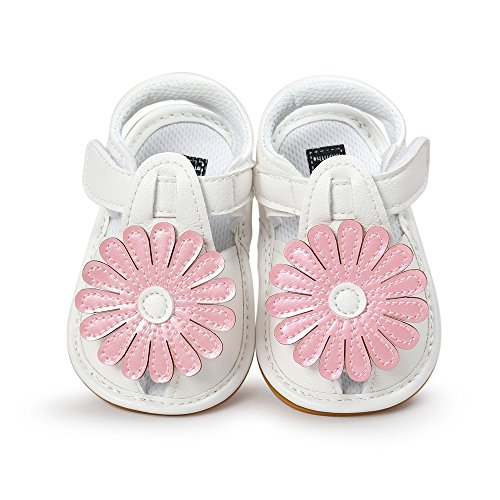 Kunerベビー女の子PUレザー花ゴム底滑り止めサマーサンダル最初Walkers カラー: ピンク