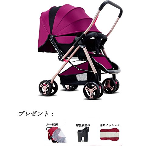 Kuria 両対面ベビーカー 軽量式 (1ヶ月~36ヶ月頃対象) 4輪 最新の振動吸収性能 ピンク レット ブルー 緑 バラレット (バラレット)