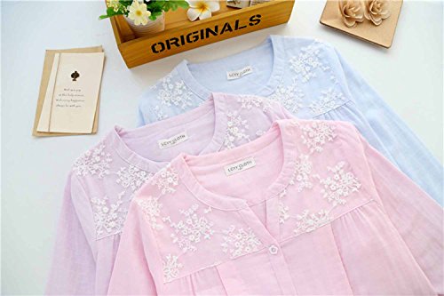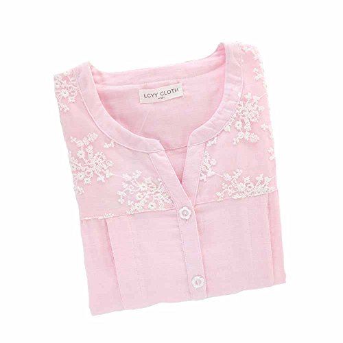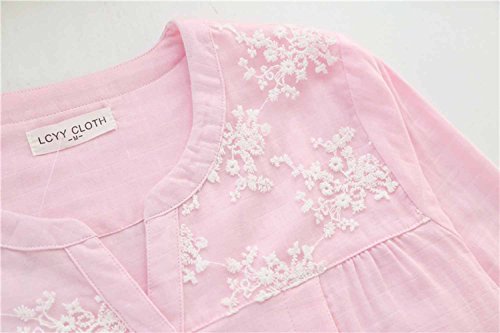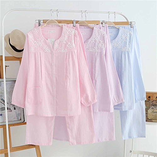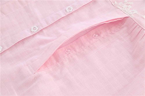 Kuria マタニティ ナイトウエア 上下セット 授乳口付き 可愛いレース 肌に優しいガーゼ生地 ルームウエア パジャマ3サイズ3色 (L;, ピンク)