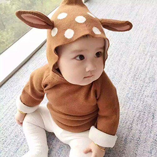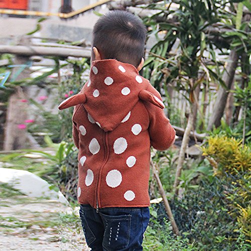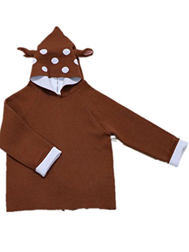 Kuria 男女共用 春秋冬鹿耳フード付き 裏ベコア 防寒 可愛い 柔らかいセーター (120cm, コフィーべコア)